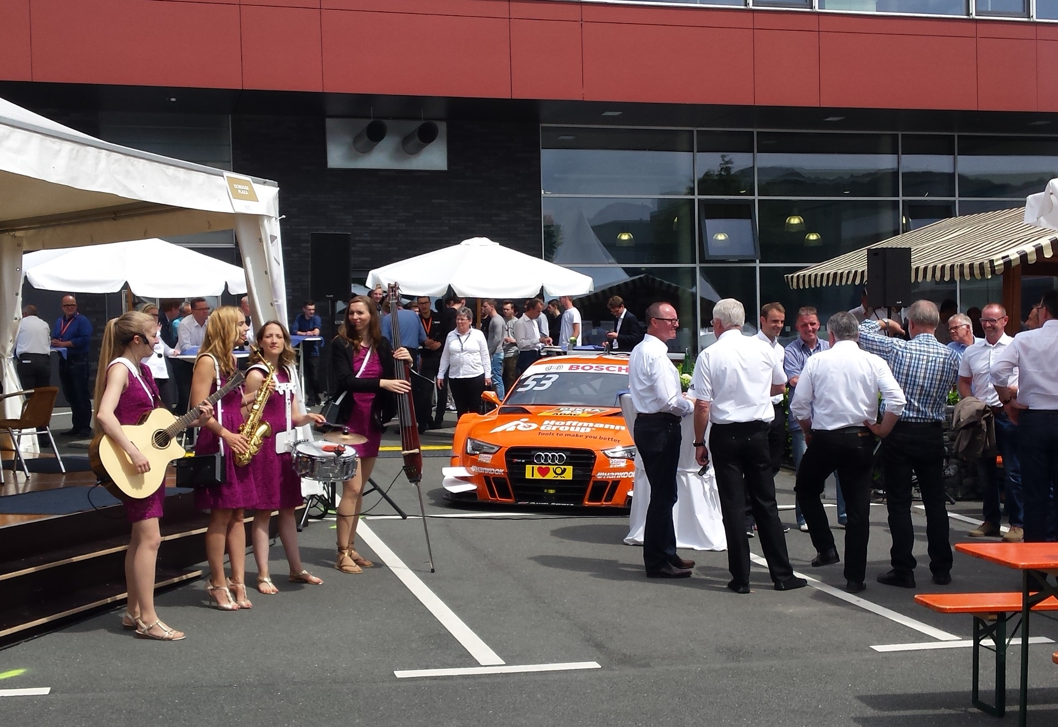 With two evening events and a three-day anniversary fair, the Bielefeld family company Oltrogge celebrated its 150th anniversary. Around 1,500 visitors took the opportunity from June 15 to 17, 2016, to learn on the company premises about the range of services and expertise of Oltrogge, its suppliers, and partner companies. A highlight was the visit of British racing driver Jamie Green and his team manager Arno Zensen with the DTM racing car (Audi RS 5 DTM). A female walking band and a trade fair moderator team provided live entertainment and up-to-date information from the exhibition stands. Nordmann Event Consulting was also commissioned to plan and manage the gala evening for business partners and the celebration evening for employees, both staged on the stage of the Stadttheater Gütersloh. Diverse artist performances and show acts, as well as the premiere of a specially produced company film, made both evenings a highlight in Oltrogge’s history.